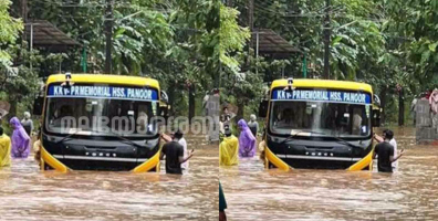 പാനൂരിൽ സ്കൂൾ ബസ് വെള്ളക്കെട്ടിൽ കുടുങ്ങി