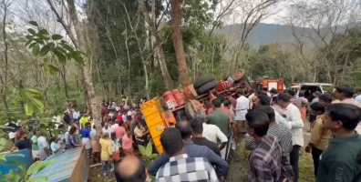 കണ്ണൂർ നടുവിൽ താവുകുന്നിൽ നിയന്ത്രണം വിട്ട ലോറി മറിഞ്ഞ് അപകടം