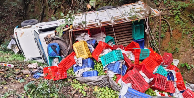 മാക്കൂട്ടം കുട്ടപ്പാലത്ത് പേരയ്ക്ക കയറ്റിവന്ന പിക്കപ്പ് വാൻ മറിഞ്ഞ് അപകടം
