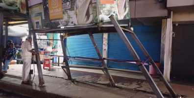 ഇരിട്ടി ബസ് സ്റ്റാൻഡിലെ ബസ് കാത്തിരിപ്പ് കേന്ദ്രം ബസ് ഇടിച്ച് തകർന്നു