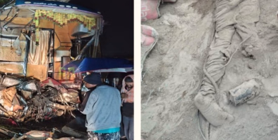 ഹുൻസൂരിൽ ടൂറിസ്റ്റ് ബസ് ലോറിയുമായി കൂട്ടിയിടിച്ച് രണ്ട് മരണം.