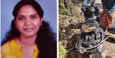 സ്കൂട്ടറിൽ സ്കൂൾ ബസ് തട്ടി അപകടം: പ്രതിശ്രുത വധുവിന് ദാരുണാന്ത്യം; സ്കൂട്ടർ ഭാഗികമായി കത്തിനശിച്ചു